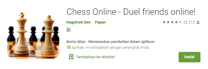 Game ini adalah salah satu game catur online Android yang paling banyak dimainkan. Di dalam game ini kamu bisa saling chat sesama pemian dan tentunya ini akan menjadi seru saat bermain catur online dan untuk yang mau mendownload game ini [Klik Disini]