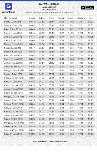 Didalam aplikasi ini ada fitur dimana disana akan tampil jadwal sholat sesuai zona lokasi dari pada pengguna dari hp andoird kamu. Penghitungan waktu telah disesuaikan di seluruh indonesia dan didalam aplikasi ini ada fitur Penghitung waktu sholat yang akurat, Hitungan waktu sholat berikutnya, berbagai jenis notifikasi seperti mengatur suara adzan notifikasi alaram dan petunjuk kiblat jadi ayo download [Klik Disini]