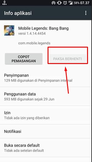2. Paksa Berhenti Aplikasi Mobile Legends