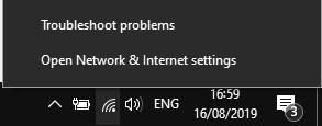 2. Jika sudah terhubung ke wifi lalu kamu pergi ke icon logo Wifi – Open Network & Internet Settings