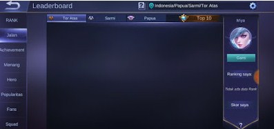 Mobile Legends sekarang ada fitur dimana setiap hero bisa mendapatkan gelar leaderboard jalan top kampung atau top kota, fitur ini menurut saya saangat bagus, dimana kita setiap hero bakal merasakan yang namannya top kampung atau kota.