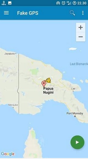 4. Jika sudah buka aplikasi Fake GPS Lalu tentukan kamu mau di mana letak lokasi tempat GPS kamu, saya sarankan di kota atau negara yang minim bermain game Mobile Legends, kalo saya sendiri pilih lokasinya di Papua.