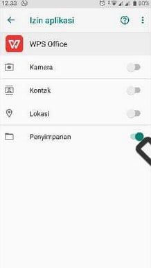Buka menu Pengaturan Android > Aplikasi > WPS Office > Izin aplikasi > Aktifkan penyimpanan