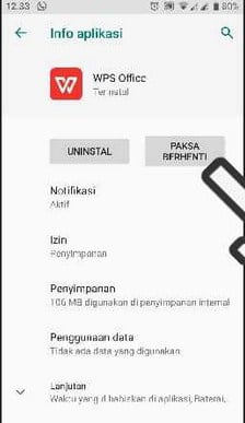 Memperbaiki Mengatasi WPS Office Error di Android Bisa kamu coba terapkan coba paksa berhenti aplikasi WPS Offic di pengaturan, pasalnya mungkin program aplikasi yang kamu pakai bentrok dengan cache aplikasi lain jadi alangkah bainya kamu coba paksa berhenti dulu aplikais WPS officenya dan untuk caranya cek di bawah