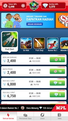 MPL adalah aplikasi game yang di dalamnya ada 5 permainan kelima permainan ini sangat mudah di mainkan bagi semua kalangan, apalagi setiap kalian bermain kalian akan mendapatkan diamond. Untuk 1 sama dengan Rp 100 saldo gopay gojek. Jadi jika kamu mengumpulkan 100 diamond makan kita dapat menukarkan senilai 10rb di saldo gopay kita.
