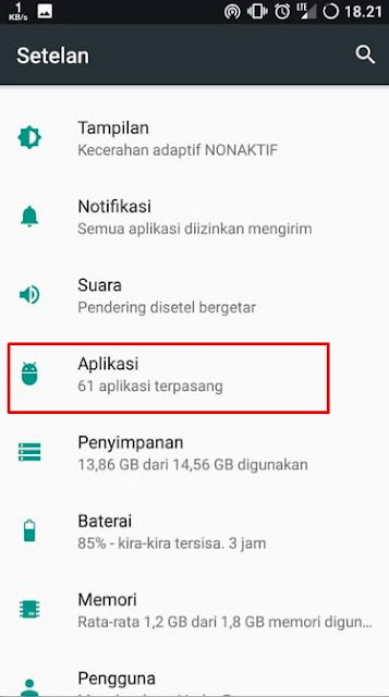 2. Lalu kamu scroll ke bawah pilih menu aplikasi lihat gambar dibawah ini