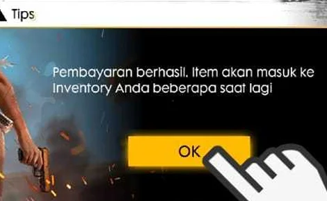 5. Jika sudah berhasi nantinya kamu akan di kembalikan lagi ke Game Free Firenya dan Diamond Sudah Terisi dan ada juga Notifikasi pembelian berhasil kayak di bawh ini