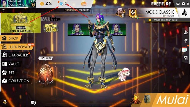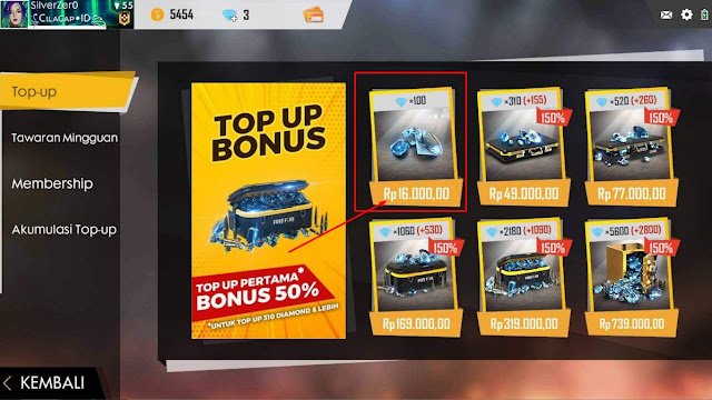 1. Pertama kamu buka game Free Fire lalu kamu klik logo diamond di atas