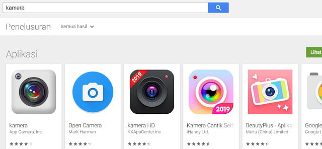 kamera seperti Camera 360, Open Camera, Kamera HD, Google Camera, BeautyPlus, dan masih banyak lagi jenis kamera yang berada di Playstore