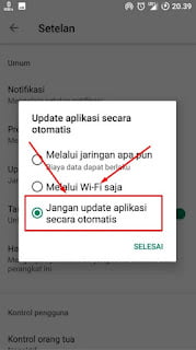 - Lanjut pilih auto-update apps/pembaruan aplikasi otomatis