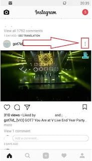1. Buka aplikasi instagram lalu cari video yang ingin kamu download dan klik titik tiga di bagian video yang ingin kamu download