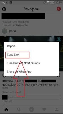 2. Kemudian, buka Instagram dan langsung copy link video yang ingin Kamu download. Jika Kamu sudah selesai copy, maka selanjutnya Kamu bisa langsung paste link tersebut di kolom Dredown. Lalu, klik Dredown yang ada di samping kolom tersebut.