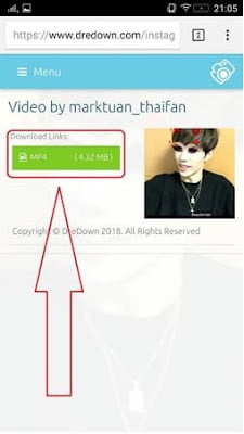 3. Secara otomatis, Dredown akan menampilkan sebuah link dengan format MP4. Klik saja link yang ada di dalam kolom berwarna hijau maka video tersebut akan didownload oleh kamu.
