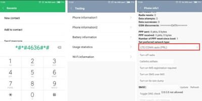 Kalo tidak memunculkan menu tersembunyi lewat kode di atas lewat panggilan, kalian bisa juga menggunakan aplikasi 4G LTE Switcher (40 KB). Ketika aplikasinya di buka, maka akan langsung menuju ke menu Phone info.