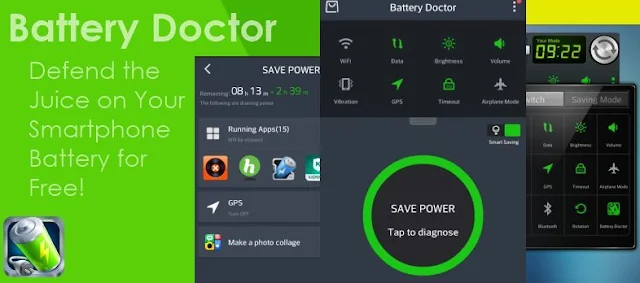 Battery doctor ini memiliki kemampuan yang hampir sama dengan Du Battery Saver, Cuma aplikasi ini memiliki fitur andalan yaitu sesuai namanya dokter yang berarti menganalisa lalu mengobati. Ya,, begitulah cara kerja aplikasi ini. Untuk fitur lainnya kurang lebih sama dengan Du Battery Saver.