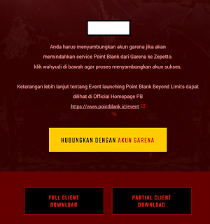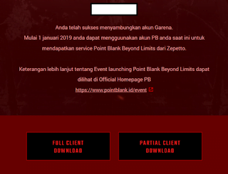 Sya ingin menginfokan bahwa mulai pada tanggal 1 Januari 2019, Garena Point Blank Indonesia selaku publisher game Point Blank akan mengalihkan service sepenuhnya kepada Zepetto Interactive Indonesia. Tapi jangan sedih ! Game Point Blank akan tetap bisa kalian mainkan. Inventory, rank, exp, PB Balance cash dan point kalian juga tidak akan berubah. Hanya saja akan dilakukan beberapa maintenance service untuk persiapan proses perubahan server dari Garena Point Blank Indonesia ke Zepetto Interactive Indonesia. Informasi lebih lanjut akan mimin kabarin melalui Facebook dan Instagram resmi Garena Point Blank Indonesia.