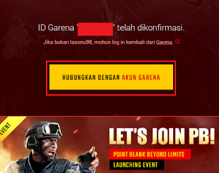 - Setelah muncul, masukkan akun Garena anda yang ingin di sinkronkan dengan akun Point Blank Anda.