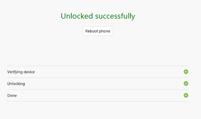 • Jika proses selesai, maka akan muncul status Unlock Succesfully. Berikutnya klik Reboot Phone. Selesai!