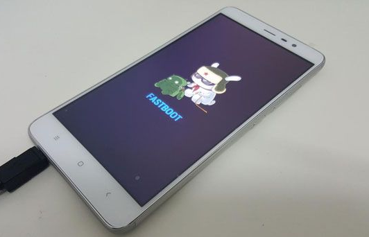 • Matikan perangkat kemudian masuk ke fastboot mode dengan menekan tombol Power+Vol Down secara bersamaan hingga muncul logo Fastboot, kemudian lepaskan. Selanjutnya, sambungkan smartphone Anda ke komputer menggunakan USB.