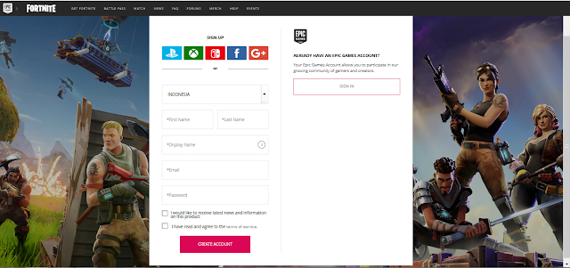 Buatlah akun Fornite atau mainkan dengan salah satu akun media sosial atau email pribadi milikmu.