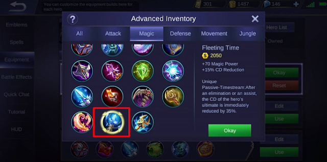 Selain penambahan magic power sebesar 70 poin serta efek cooldown reductions sebesar 15 persen, yang lagi nanti bisa kita konversikan menjadi magic penetration atau magic resistant. Selain itu juga ada efek cooldown reductions sebesar 35 persen untuk skill ultimate kita.