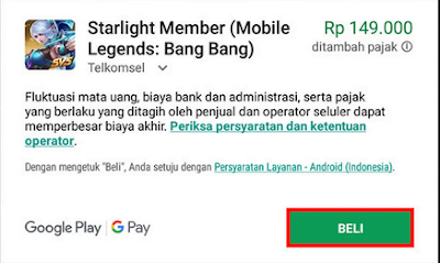 7. Pilih Beli, jika pulsa kalian mencukupi maka secara otomatis kalian sudah berhasil melakukan pembelian Starlight Member Mobile Legends tersebut.