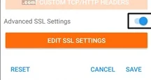 4. Jika sudah, tap tombol EDIT SSL SETTINGS, ini untuk mengatur URL bug dan port dari URL bug kuota Facebook Tri. Silahkan atur seperti dibawah ini.