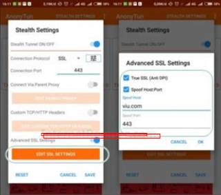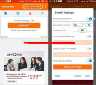 3. Kemudian pada laman awal Anonytun pilih menu Stealth Settings, kemduian setting seperti dibawah ini: