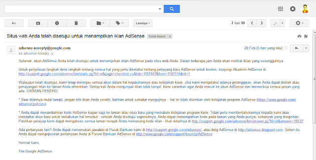 Nah, begitulah caranya. Mungkin sampai disitu dulu penjelasan tentang Contoh Email Full Approve Google Adsense Non Hosted Terbaru. Apabila masih ada yang bingung dengan langkah-langkah di atas, kalian bisa tanyakan langsung kepadaku lewat comment dibawah. Semoga bermanfaat.