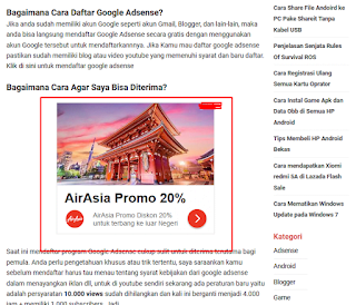 Sampai tahap ini berarti anda sudah berhasil meletakan kode unit iklan adsense anda ditengah-tengah artikel postingan blog yang anda buat. Dan berikut contoh iklan adsense saya yang tampil di Tengah Postingan