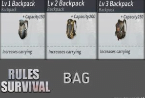 Bag atau tas ini ada 3 macam Level, bag lv.1 bag lv.2 dan bag lv.3, semakin besar level bag semakin besar pula kapasitas barang yang bisa kamu bawa di game ini.