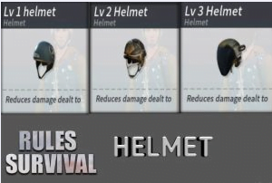 Helmet atau helem merupakan equipmen yang di gunakan untuk melindungi kepala dari serangan musuh, menghindari Haeadshoot secara tidak langsung, helmet juga memiliki 3 model yaitu Lv1. Lv.2 dan Lv3 dan semakin besar level semakin besar juga defend kamu tentunya.
