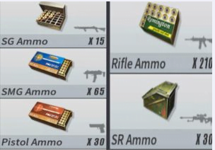 Ada 5 macam ammo di sini, ammo Handgun, SMG (Sub Machine Gun), Shotgun, Rifle, SR (Sniper Rifle). Fungsi ammo sudah pasti udah tau kan? Untuk mengisi senjata kamu, klo ga ada ammo senjata kalian pastinnya tidak akan mengeluarkan peluru karena tidak ada pelurunya ;v