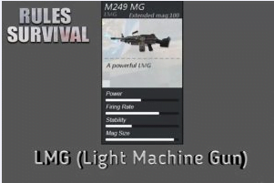 Senjata yang satu ini meruoakan senjata mematiian yang memiliki kapasitas ammo yang besar 100 peluru kalau tidak salah. Dan memiliki damage dan Fire rate yang tinggi sehingga menjadikannya senjata yang sangat mematikan sekali. Biasannya senjata ini di temukan di box Supply