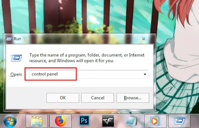 1. Masuk ke pengaturan Control Panel melalui Start Menu atau bisa dengan menekan tombol Win+R, lalu ketikkan control panel kemudian tekan Enter dikeyboardmu.