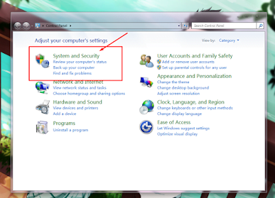 2. Pada menuControl Panel, silakan pilih System and Security.