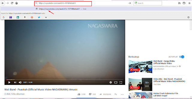 Cara pertama yang bisa kalian coba adalah dengan menambahkan ss pada url video Youtube yang ingin anda download.