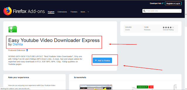 Add-ons atau extention merupakan tool tambahan pada browser yang memiliki fungsi tertentu. Ada beberapa add-ons yang bisa kita gunakan untuk mendownload video di youtube, salah satunya adalah Easy Youtube Video Downloader.