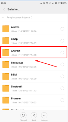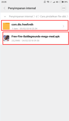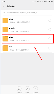 - Pilih folder obb nya lalu klik pindah disini.
