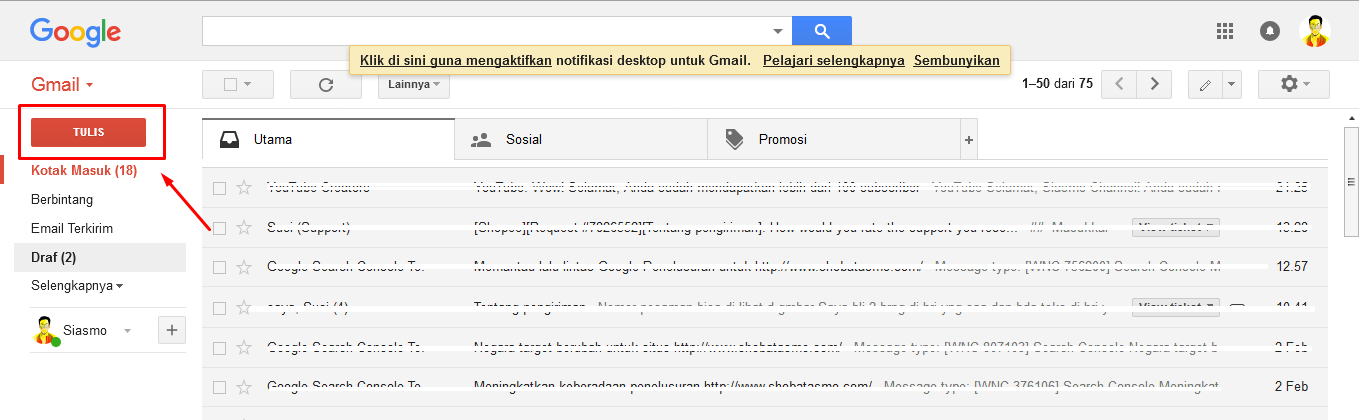 Langkah 2: Klik Tulis. Sebagai alternatif, Anda dapat membalas email yang telah Anda terima dan ikuti langkah-langkah yang sama.