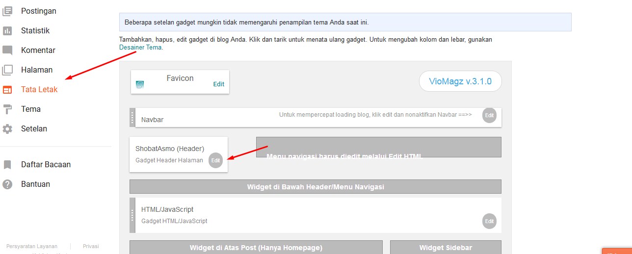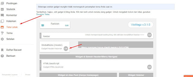3. Pda menu Header klik edit nanti akam muncul tampilan seperti ini