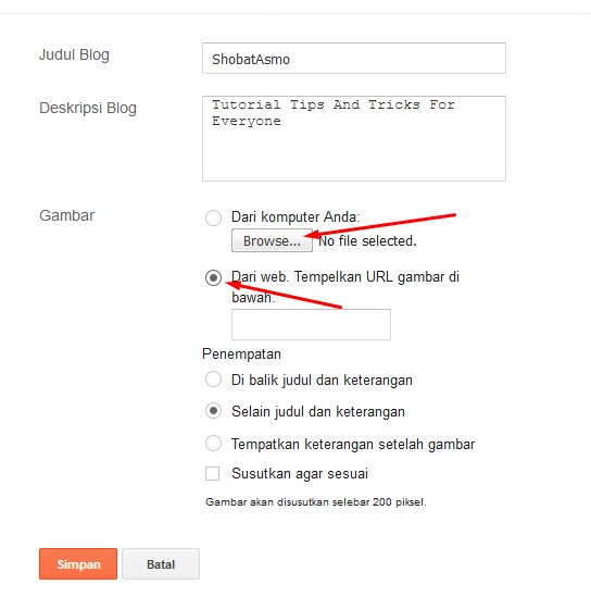 Logo Header blog oada blog perlu di ingat akan menutupi Judul dan Deskripsi Blog yang mungkin sangat panjang dan mengganggu. Kita tau bahwa tampilan header pada blog jika tidak di pasang akan menampilkan judul dan Deskripsi blog yang sudah kamu tulis di pengaturan blog.