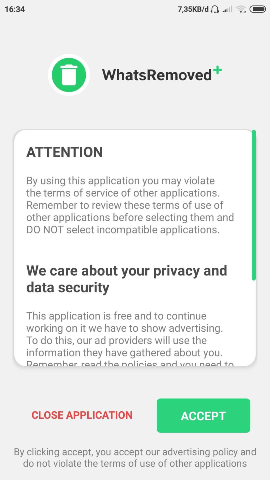 Berikan izin pada pengaturan di aplikasi WhatsRemoved