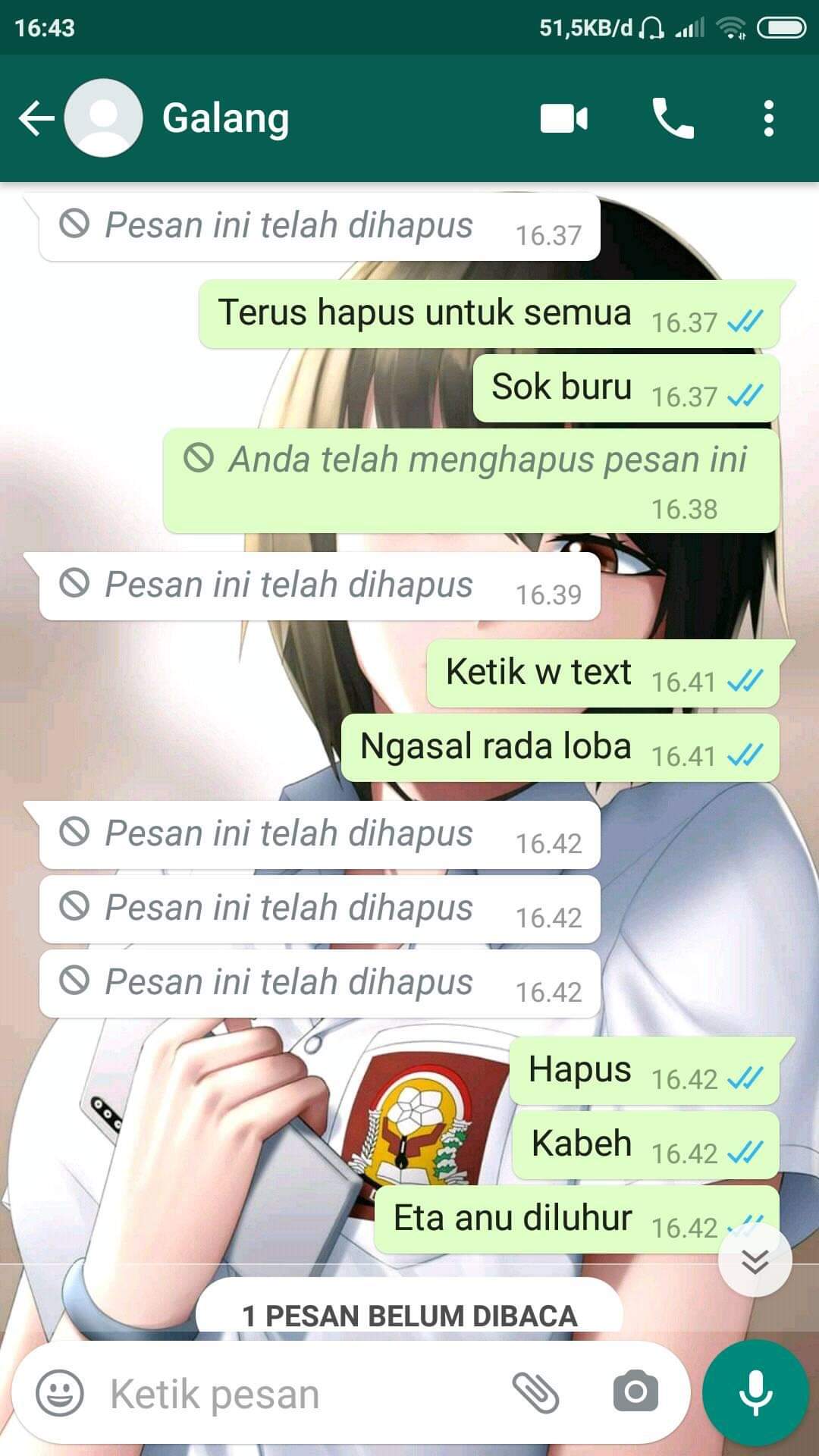 Ketika pesan di hapus kita bingung apakah yang di kirim itu adalah pesan penting atau emoji atau foto dan video entahlah kita pasti tidak tau apa yang sebenarnya di hapus oleh si pengirim pesan ini. Tentu saja itu akan membuat kita penasaran apalagi dari chat pesan dari orang terdekat atau pacar hehehe.
