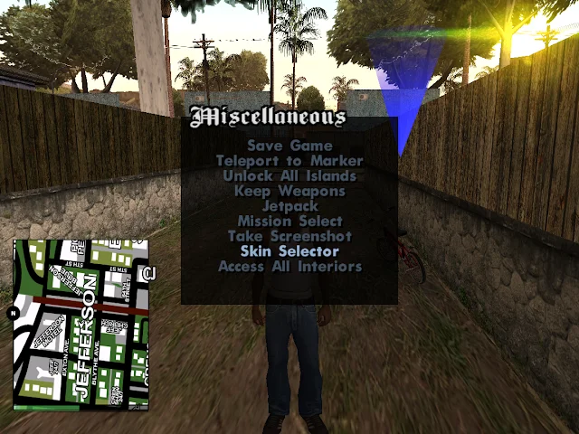 4. Setelah muncul menu di atas langkah selanjutnya untuk mengganti karakter pada GTA San Andreas kamu pilih menu Miscellaneous dan pilih Skin Selector pada menu berikutnya.. Untuk lebih jelasnya lihat gambar di bawah ini.