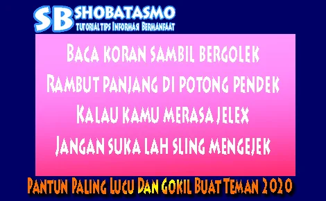 Nah pada kesempatan kali ini shobatasmo akan membagikan salah satu pantun lucu dan gokil untuk di kirim ke teman kalian melalui sosial media seperti whatsapp, facebook, twitter, instagram dan masih banyak lagi, Oke langsung saja ke contoh kalimat pantun lucu tergokil yang akan saya tulis dibawah ini.